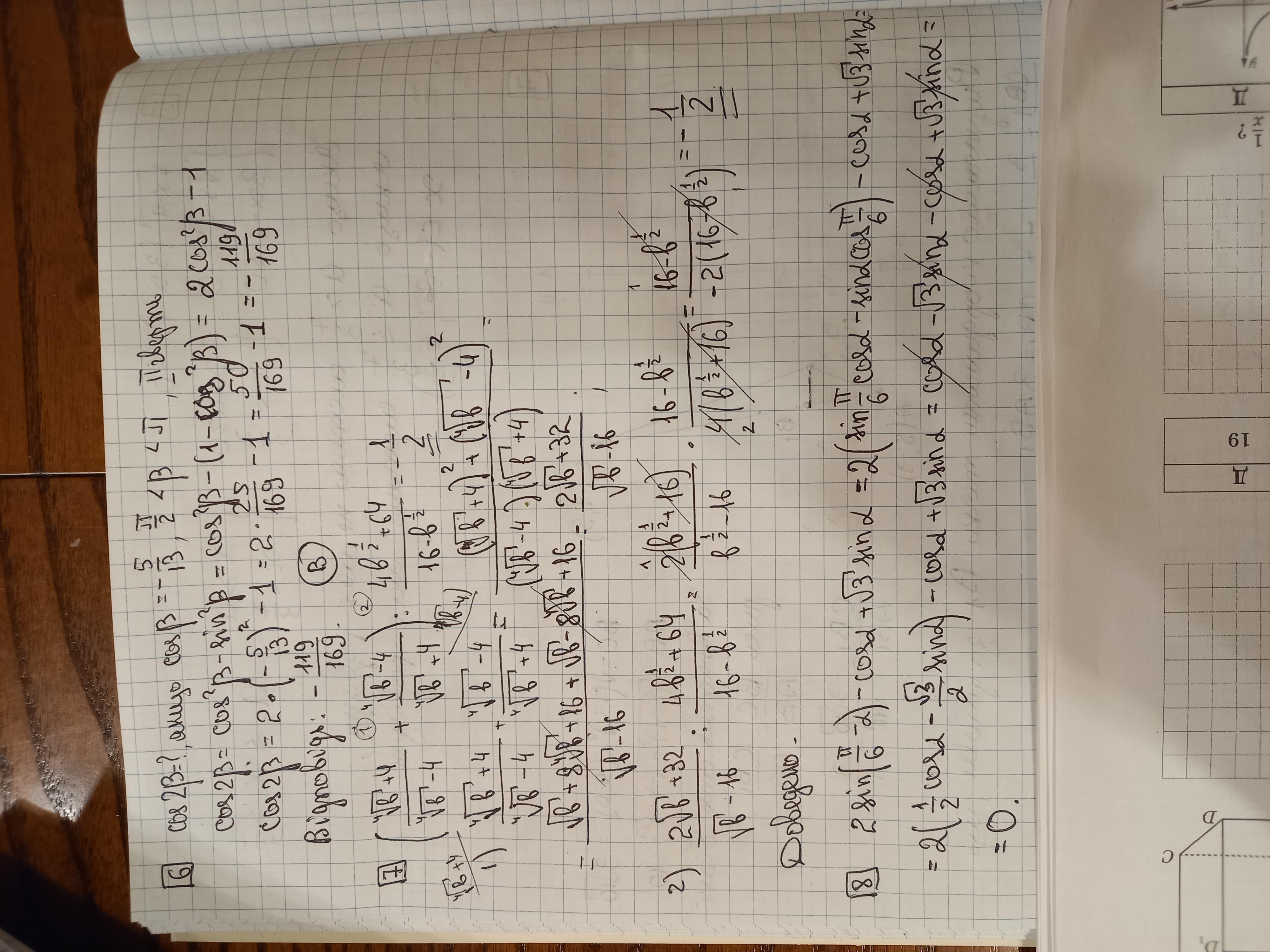 6. Обчисліть соs2 бета, якщо cos бета=-(5/13), пі/2<бета<пі