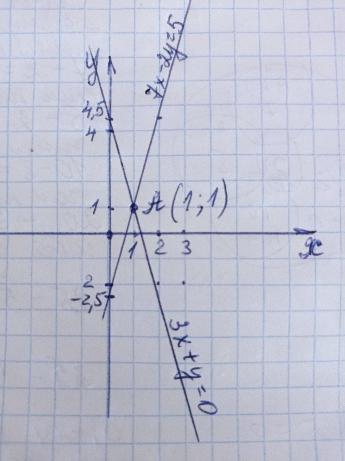 Прямую 7х - 2у = 5 провели через точки (0; -2,5) и (2; 4,5).