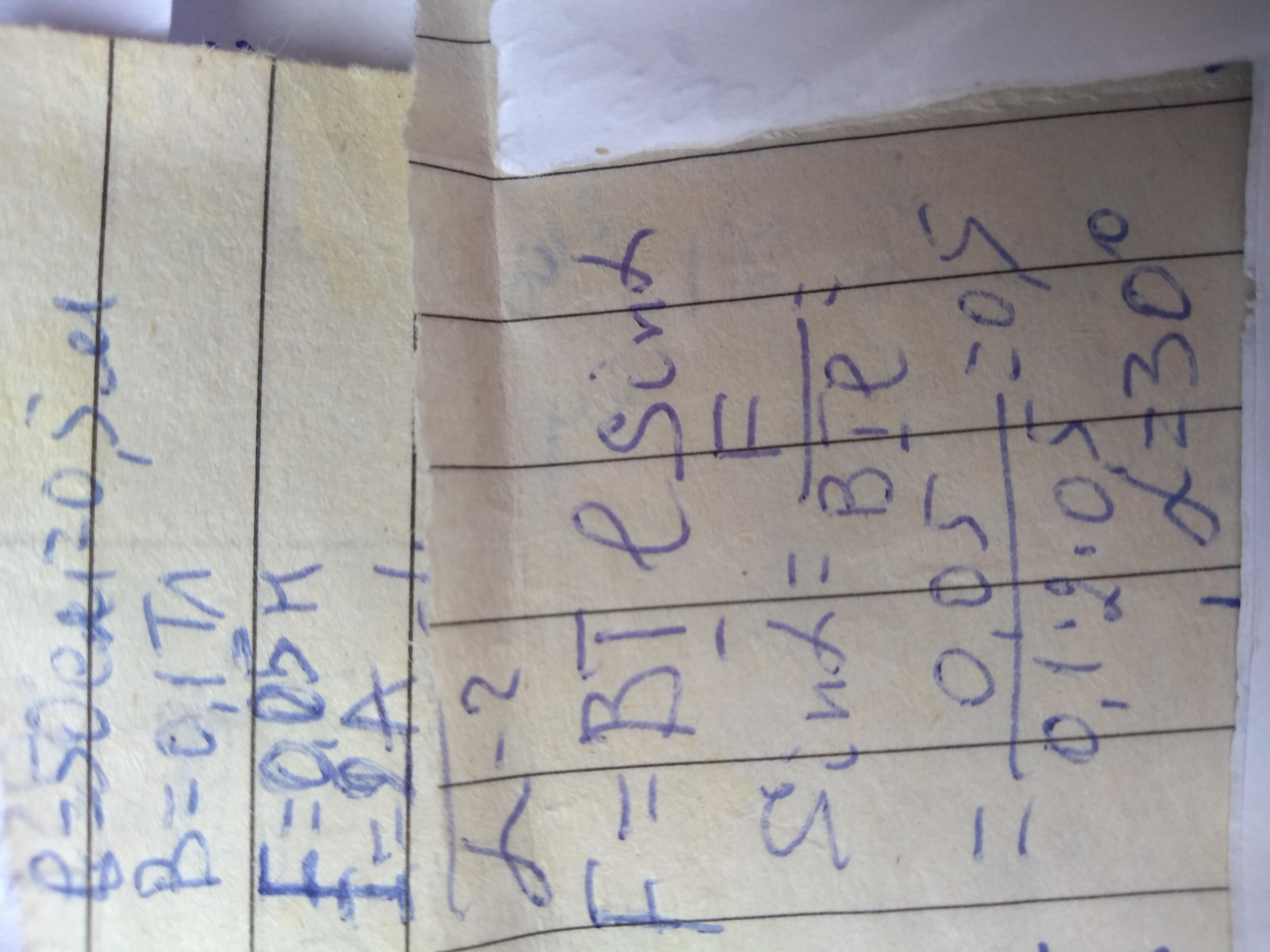 на лінійній провідник 50 см який перебуває в однорідному магнітному полі з магнітнорю індукцією 0.1 Тл діє сила 0.05 Знайти кут між напрямом струму й вектором магнітної індукції поля якщо сила струму в провіднику дорівнює 2А