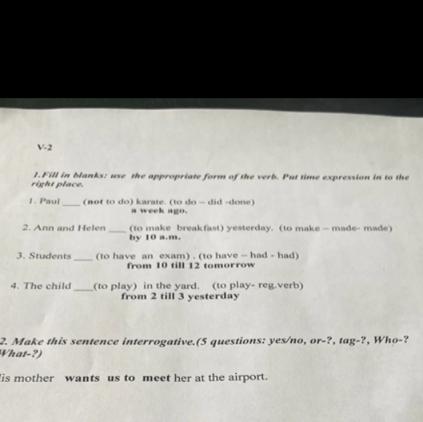 2)Ann and Helen __ (to make breakfast) yesterday. (to make - made - made) by 10 a.m.