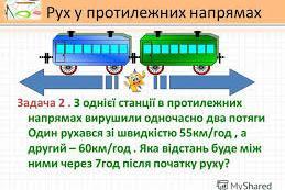 2 . 1) 55 + 60 = 115 ( км/год ) - шв. віддалення потягів