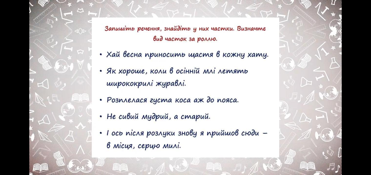 як (оклична), аж (видільна), хай (наказова), не (заперечна), ось (вказівна)