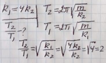у скільки разів (збільшиться чи зменшиться) період коливань пружинного маятника, якщо коефіцієнт пружності зменшиться у 4 рази? відповідь обгрунтувати. (Должно получитса : у 2 рази)