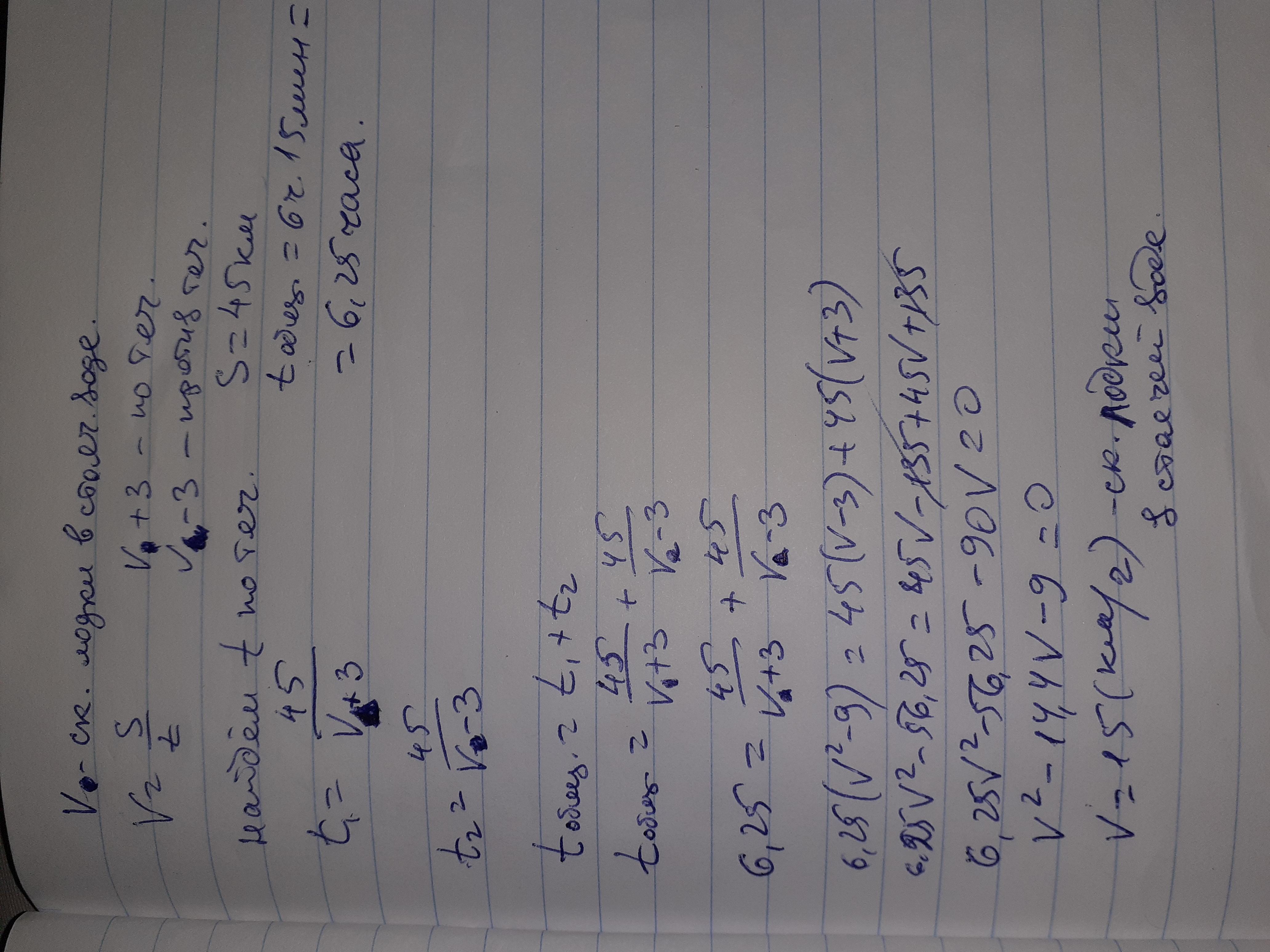Моторная лодка прошла 45 км по течению реки и вернулась обратно, потратив на весь путь 6 часов 15 минут. Скорость течения реки равна 3 км/ч. Найдите скорость лодки в стоячей воде.