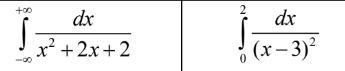Ответ:π; 2/3, второй интеграл не является несобственным