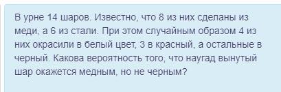 Вероятность вынуть медный шарик равна 8/14=4/7, стальной 6/14=3/7