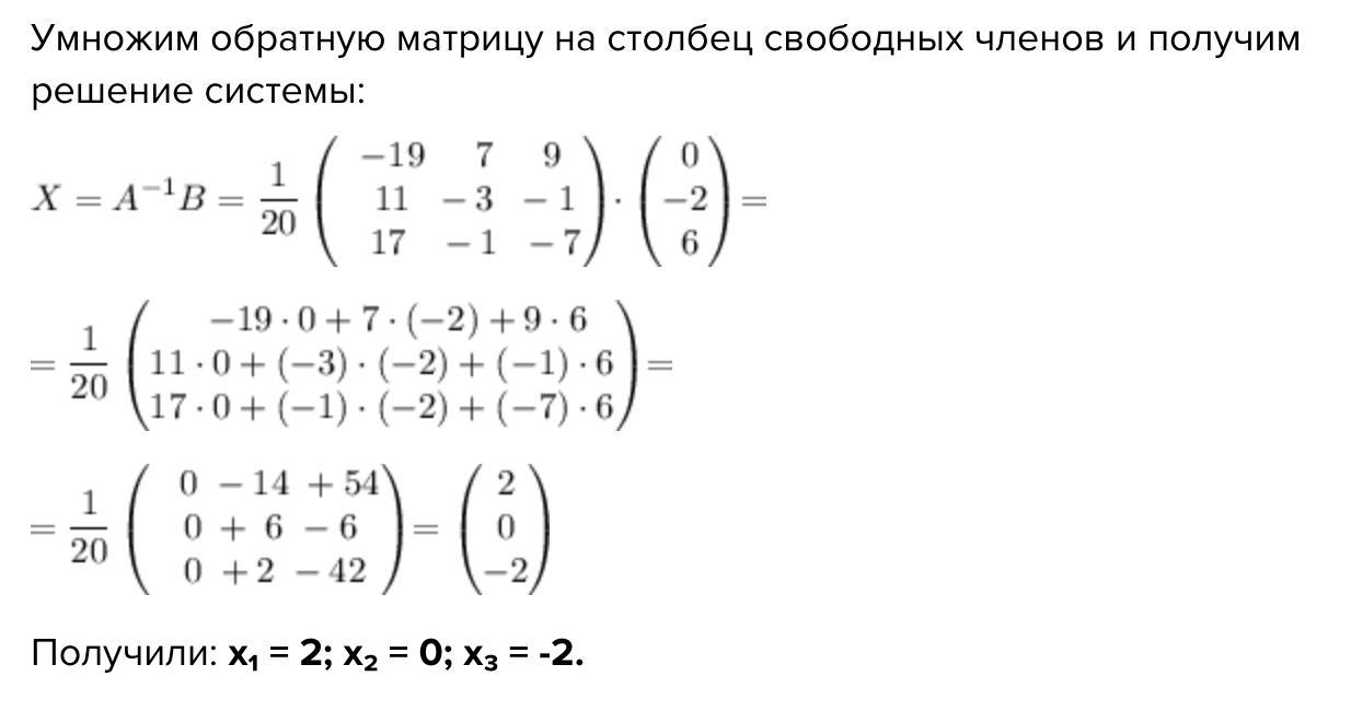 Умножим обратную матрицу на столбец свободных членов и получим решение системы: