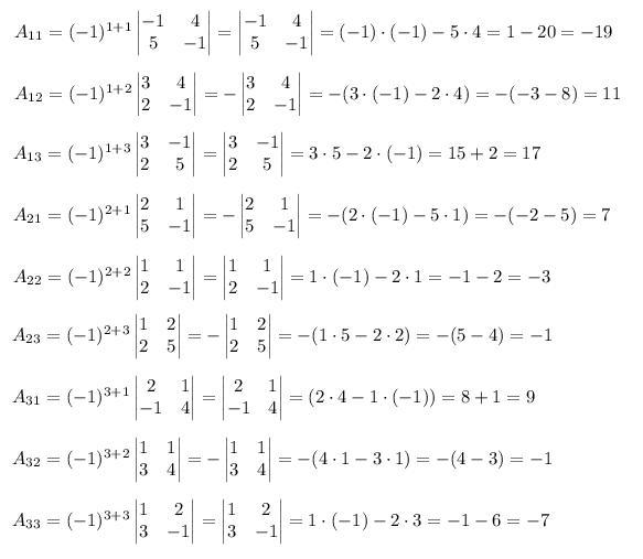 Вычислим алгебраические дополнения к соответствующим элементам матрицы А: