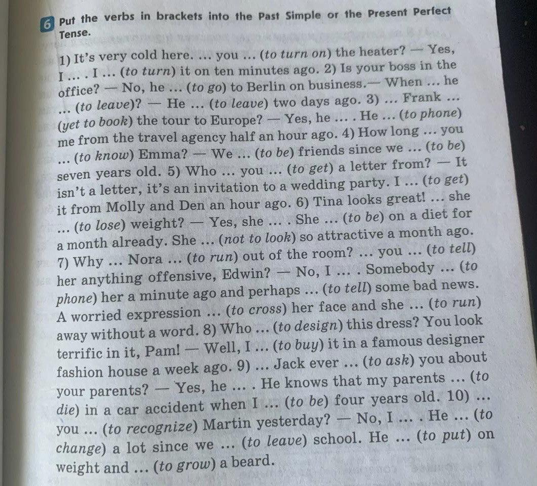 I … . I … (to turn) it on ten minutes ago. 2) Is your boss in the