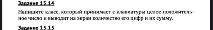 Напишите класс который принимает с клавиатуры целое положительное число и выводит на экран количество его цифр и их сумму