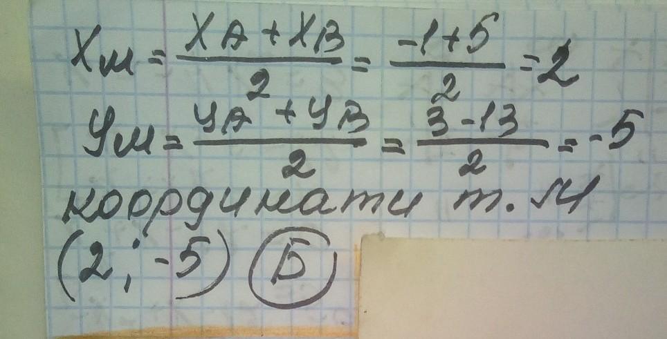 У(М)=(у(А)+у(В))/2=(3+(-13))/2= - 5