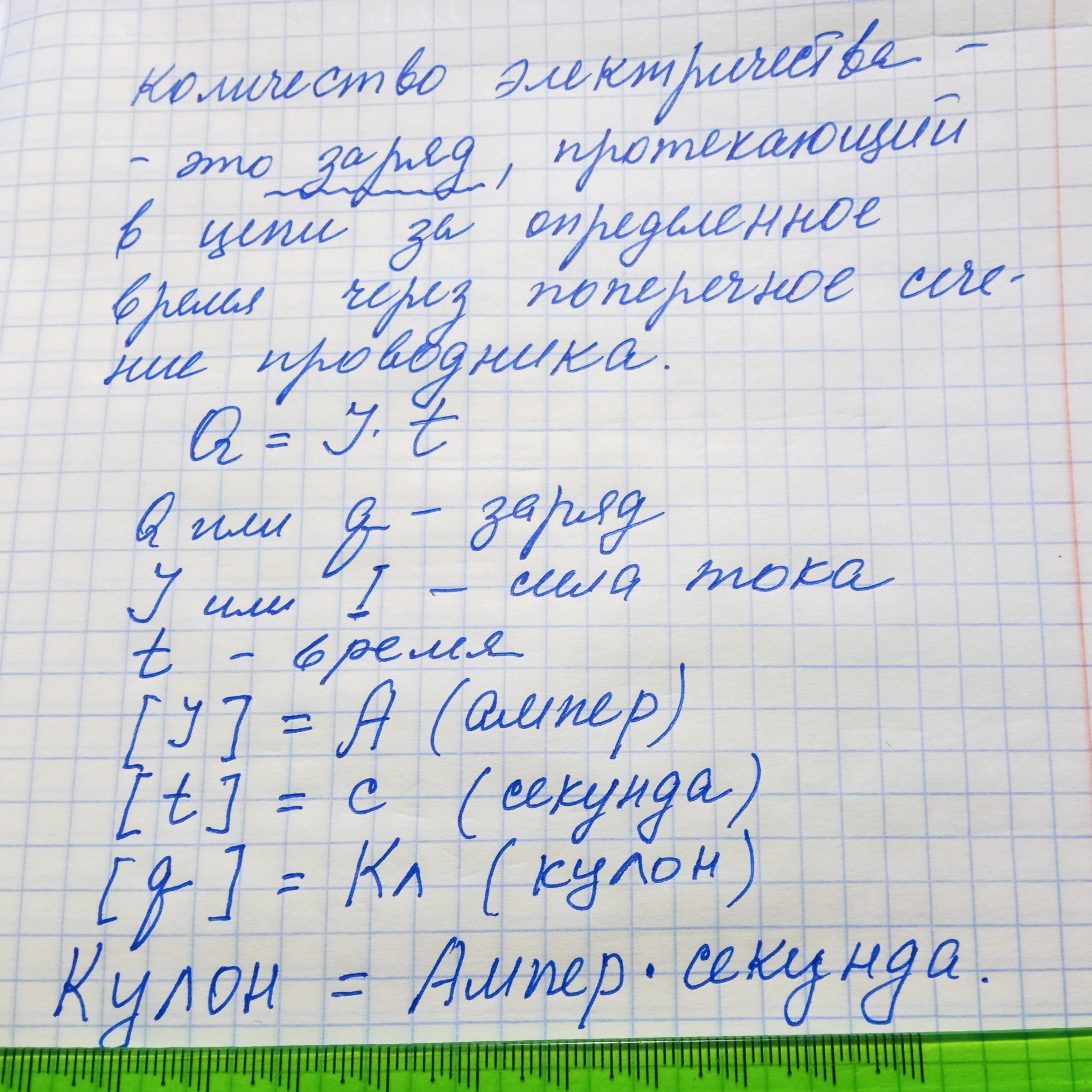 Еще раз. Количество электричества - это заряд. q=I*t. Измеряется в Кл(кулонах).