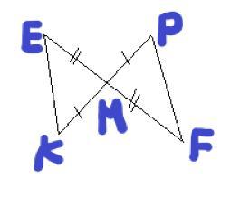 ∠ ЕМК=∠PMF (як вертикальні) ⇒ за першою ознакою рівності трикутників ΔКЕМ = Δ PMF ⇒ KE=PF= 12 см