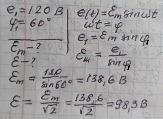 Миттєве значення ЕРС синусоїдального струму 120 В для фази 60 0 . Визначити амплітудне та діюче значення ЕРС. пжпжажпжпжп
