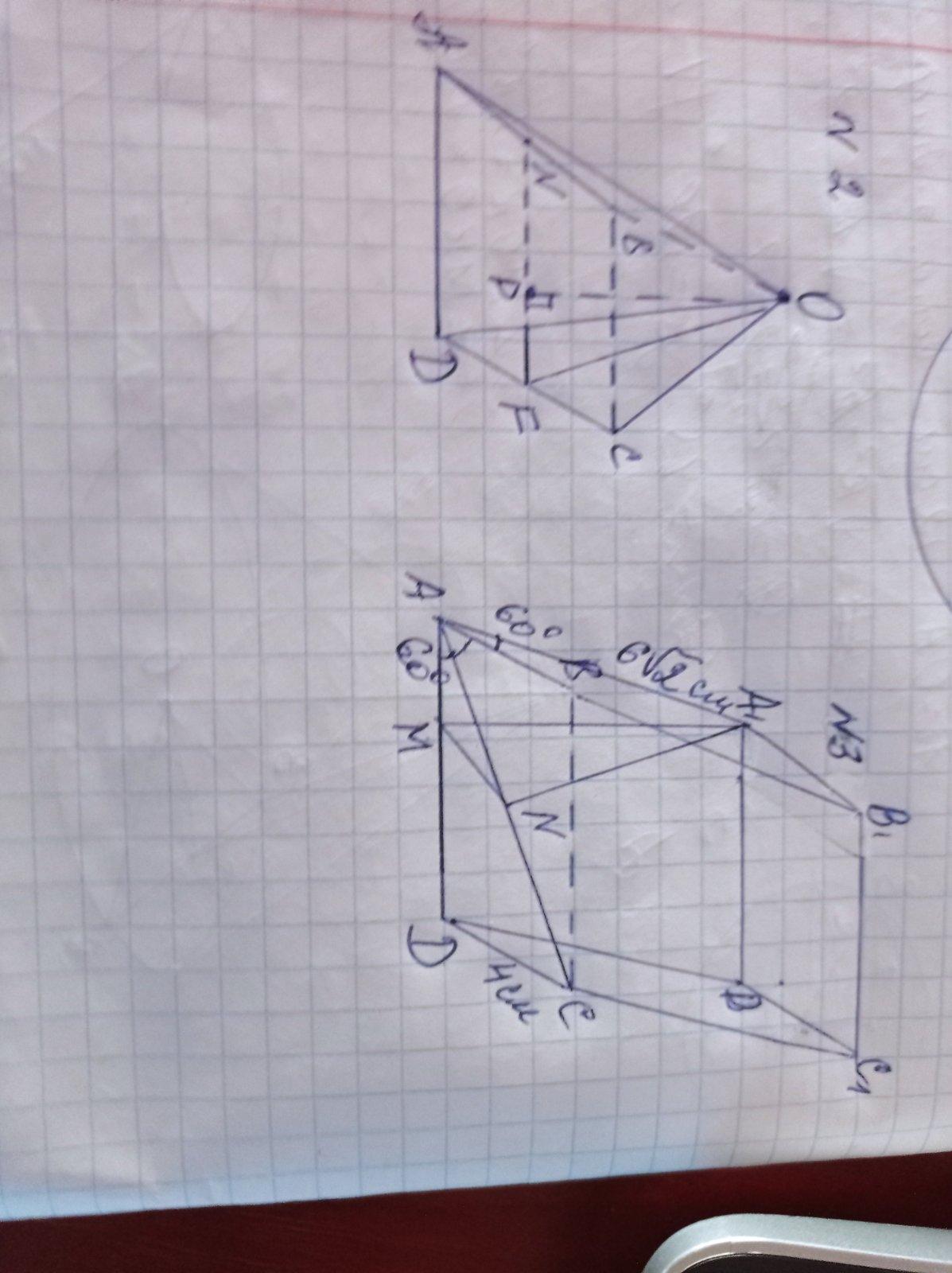 5. В основании параллелепипеда лежит квадрат со стороной 4 см, боковое ребро равно 6√2 см и образует с двумя смежными рёбрами углы по 60º. Найдите обьём параллелепипеда