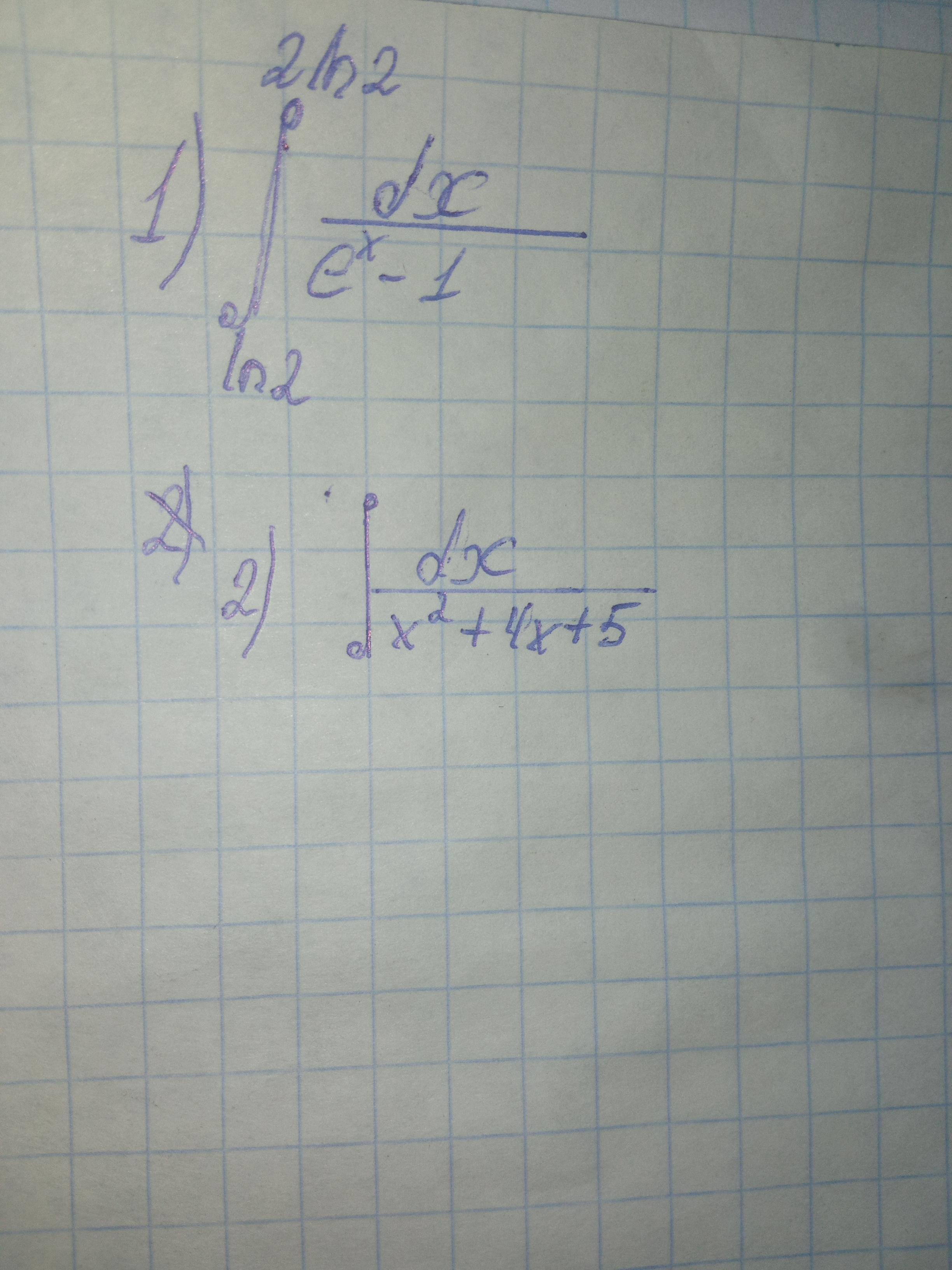 ∫dx/(eˣ-1)=(lnIeˣ-1I+lneˣ)= (lnIe^(2ln2)-1I+lne^2ln2)-(lnIe^(ln2)-1I+lne^ln2)=