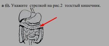 а (i). Укажите стрелкой на рис.2 толстый кишечник. [1] а(ii). Назовите, в какой отдел пищеварительной системы открываются протоки поджелудочной 3 железы [1] a(iii). Установите правильную последовательность элементов пищеварительной системы, начиная с наименьшего уровня. А) стенка кишки В) тонкая кишка С) мышечная ткань D) гладкомышечная клетка E) пищеварительная система [1] 16(b). Изучите данные приведенные в таблице «Пищеварение в тонком кишечнике человека». Заполните пропуски в строках таблицы, используя термины, приведённые ниже. Для каждой ячейки, обозначенной буквой, выберите соответствующий термин из предложенного списка. Пищеварение в тонком кишечнике человека Расщепляемые Название ферментов Образующиеся вещества соединения _(A) | амилаза глюкоза белки (пептиды) (B) аминокислоты жиры липаза (C) Список терминов и понятий: 1) сахароза 2) крахмал 3) клетчатка 4) нуклеиновые кислоты 5) пепсин 6) трипсин 7) инсулин 8) глицерин и высшие карбоновые кислоты