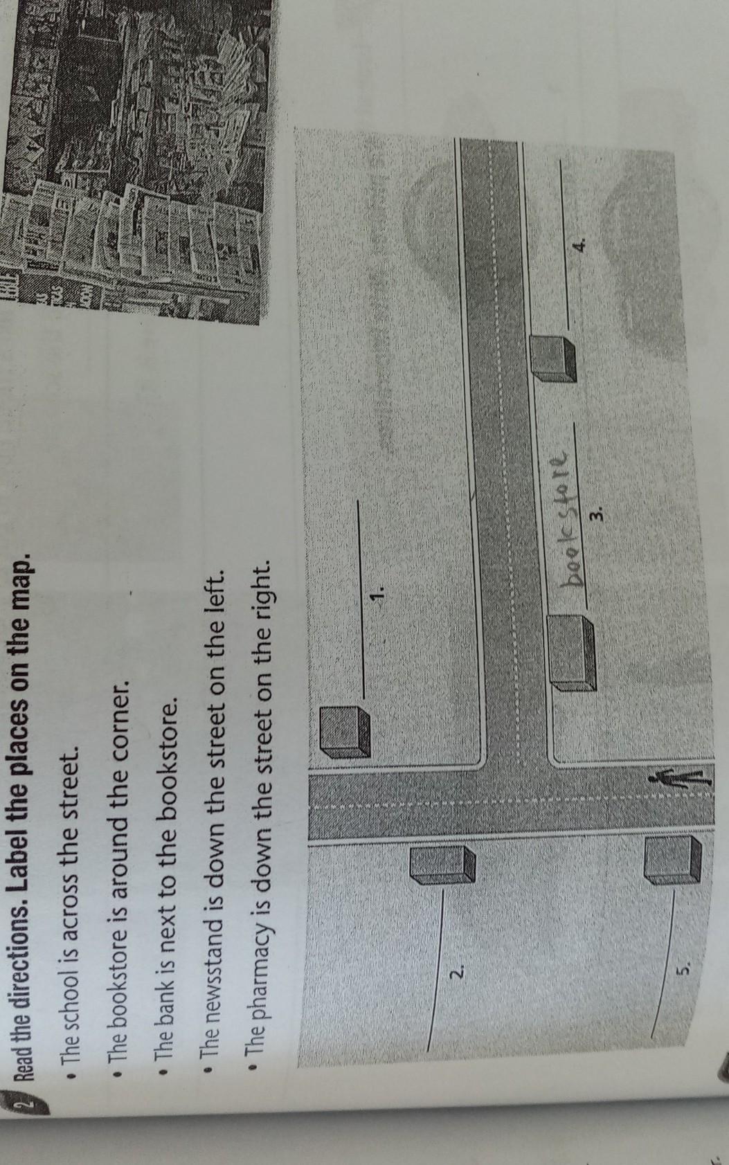 The bookstore is around the corner—книжный магазин находится на углу. Это №3.