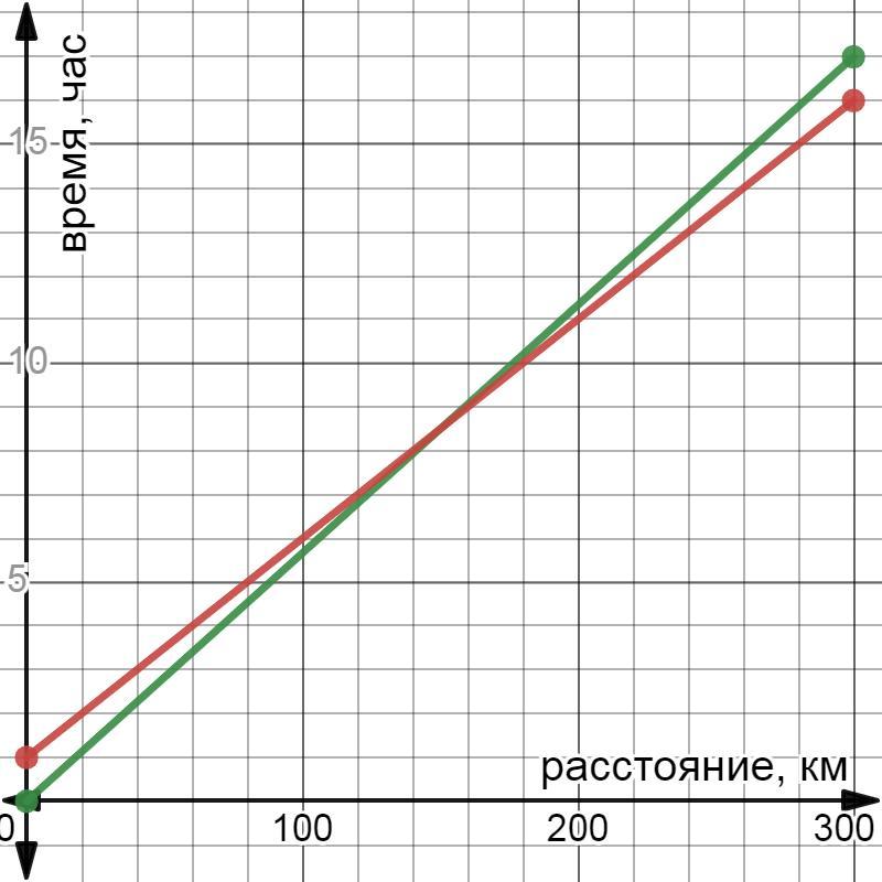 Ось ОХ : х=0 - начало движения из пункта А и х=300 - прибытие в пункт В.