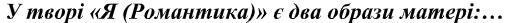 Ответ:Мати-Марія, втілення християнського людинолюбства й доброти, ― інша, світла частина свідомості героя, який намагається безуспішно протистояти злу. Мати: ще “один кінець душі” головного героя; втілення всеохоплюючої доброти й милосердя Богоматері; “наївність, тиха жура і добрість безмежна”; “мій неможливий біль”.
