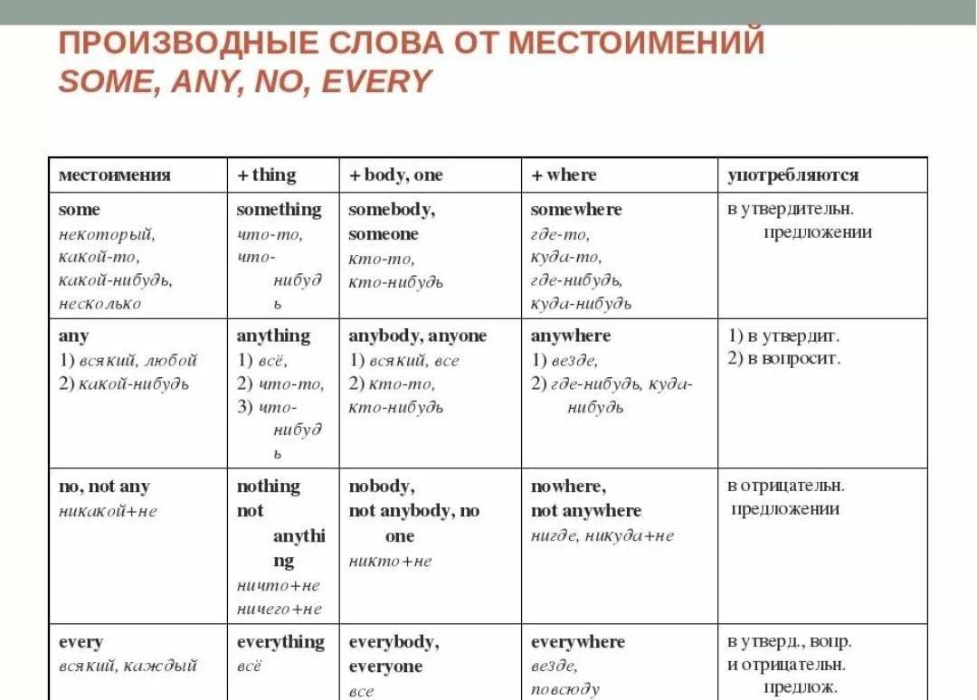 Местоимение any и все его производные обычно употребляются в отрицательных и вопросительных предложениях.