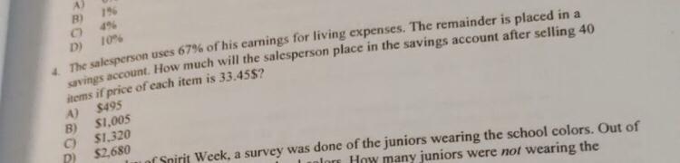 продавец использует 67% своего заработка на расходы на проживание, а остаток кладет на сберегательный счет. сколько продавец положит на сберегательный счет после продажи 40 предметов, если цена каждого предмета составляет 33,45 $