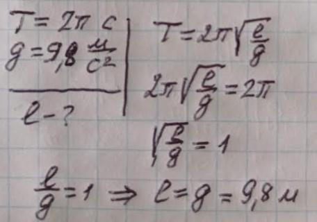 Математичний маятник має період коливань 2π с. Визначте його довжину.