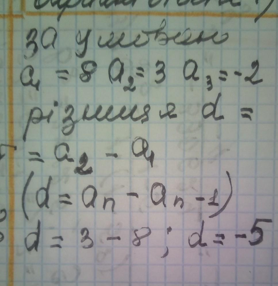прокоментуйте , як знайти різницю арефметичної прогресії 8;3;-2;... ​