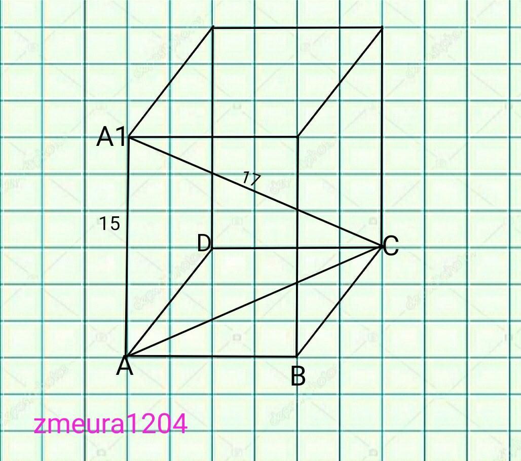 АС=√(А1С²-АА1²)=√(17²-15²)=