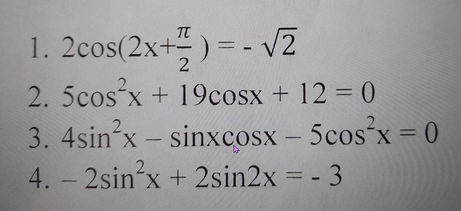 1 ) 2cos( 2x + π/2 ) = - √2 ;