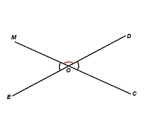 сумма вертикальных углов мое и дос образованных при пересечении прямых мс и де равна 156 градусов.найдите угол мод