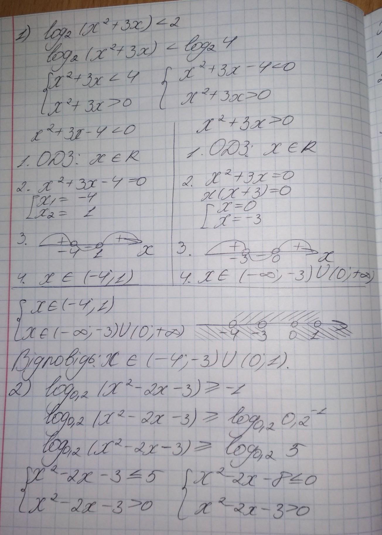 1) х є (-4;-3)\/(0;1)