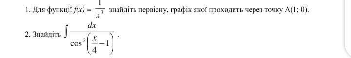 1. Для функции найдите первообразную , график которой проходит через точку A( 1 ; 0 )