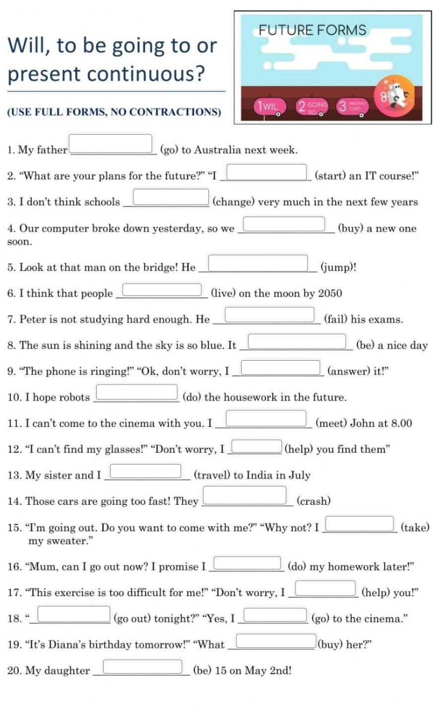 14. Those cars are going too fast! They are going to crash. (прогноз на основе наблюдений)