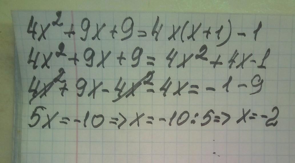 4x2+9x+9=4x(x+1) -1 помогите решить уравнение... Пожалуйста
