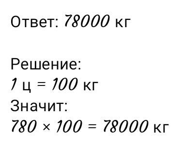 780 ц = 780*100 кг = 78000 кг