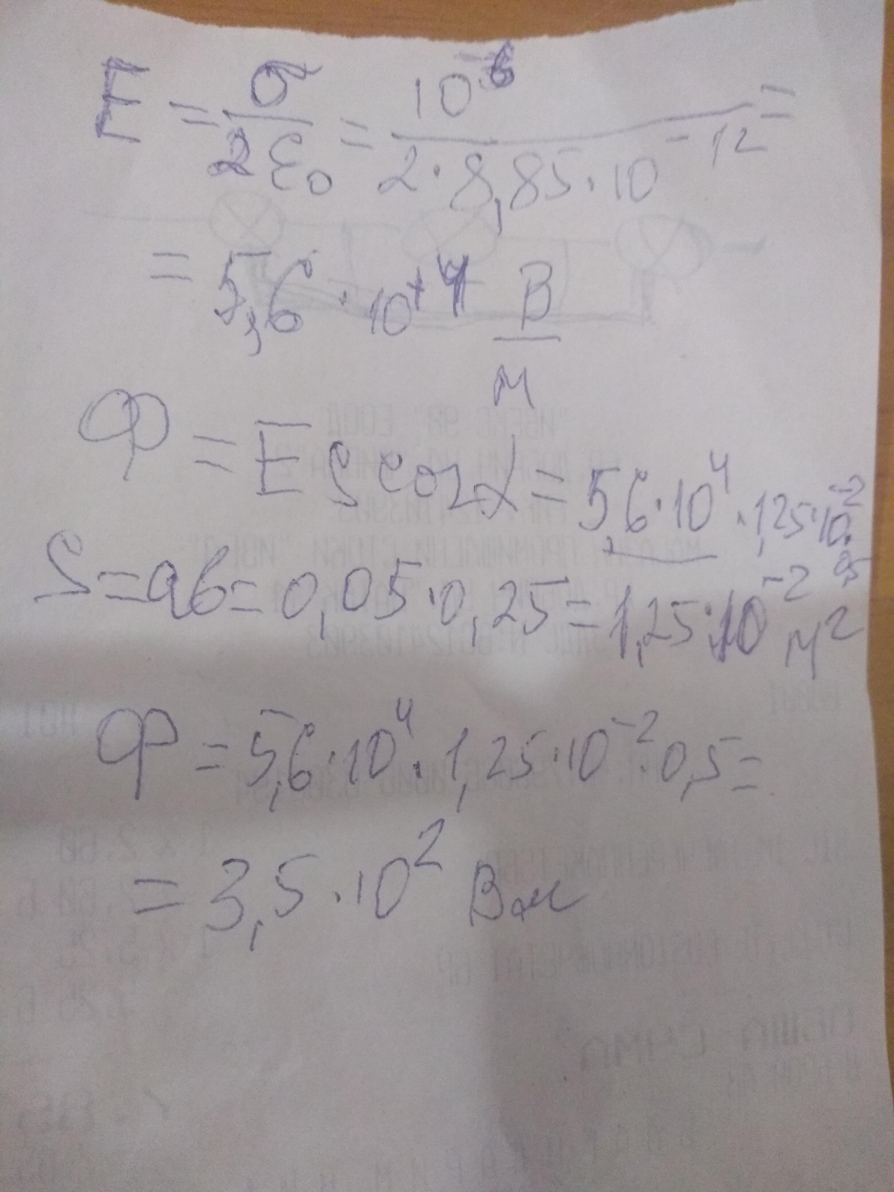 знаходиться на деякій відстані від нескінченної рівномірно зарядженої площини (σ = 10