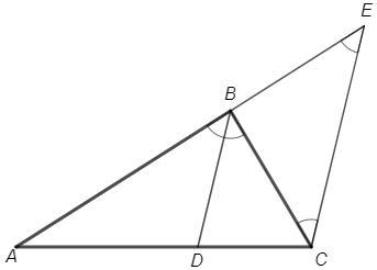 В трикутнику АВС проведена бісектриса ВD. Із вершини С проведена пряма паралельно ВD до перетину з продовженням сторони АВ в точці Е. Який вид трикутника ВСЕ?