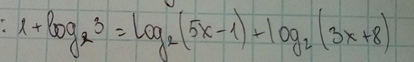 1 + log₂3 = log₂(5x-1) + log₂(3x+8)