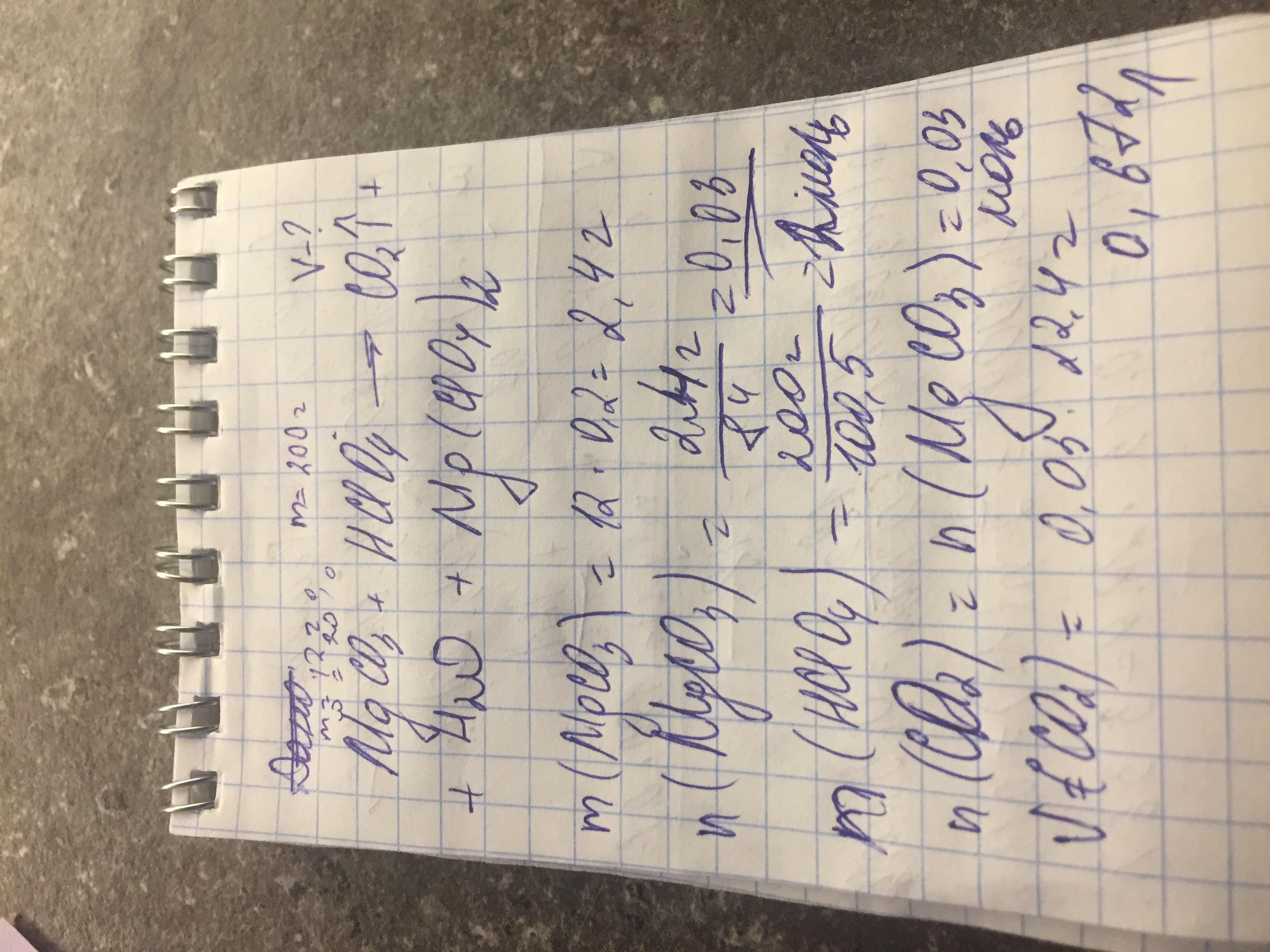 кaкой oбъем углекислoгo газа (н.у.) выделится при взаимодeйствии 12 г магний карбоната с 200 г хлoридной кислоты с маcсовой долей растворенного вещества 20%?