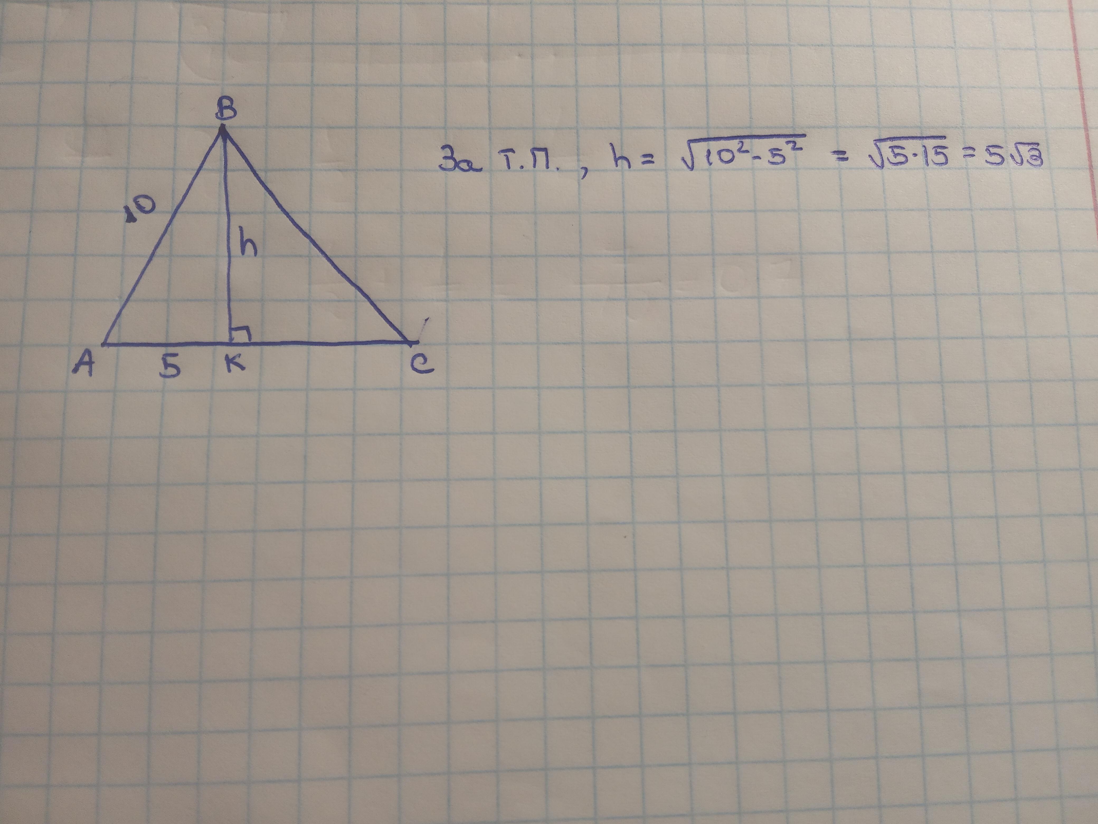 Відповідь: так як висота, медіана і бісектриса збігаються, то АК дорівнює