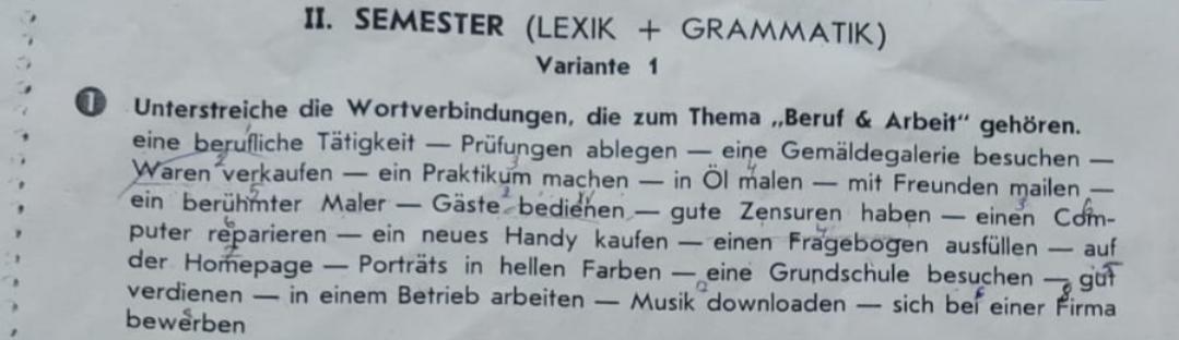 Пояснення: alles anderen würde ich einfach weglassen, aber in Klammern kannst du noch die Prüfungen angeben lassen, sonst gibt es hier nichts.