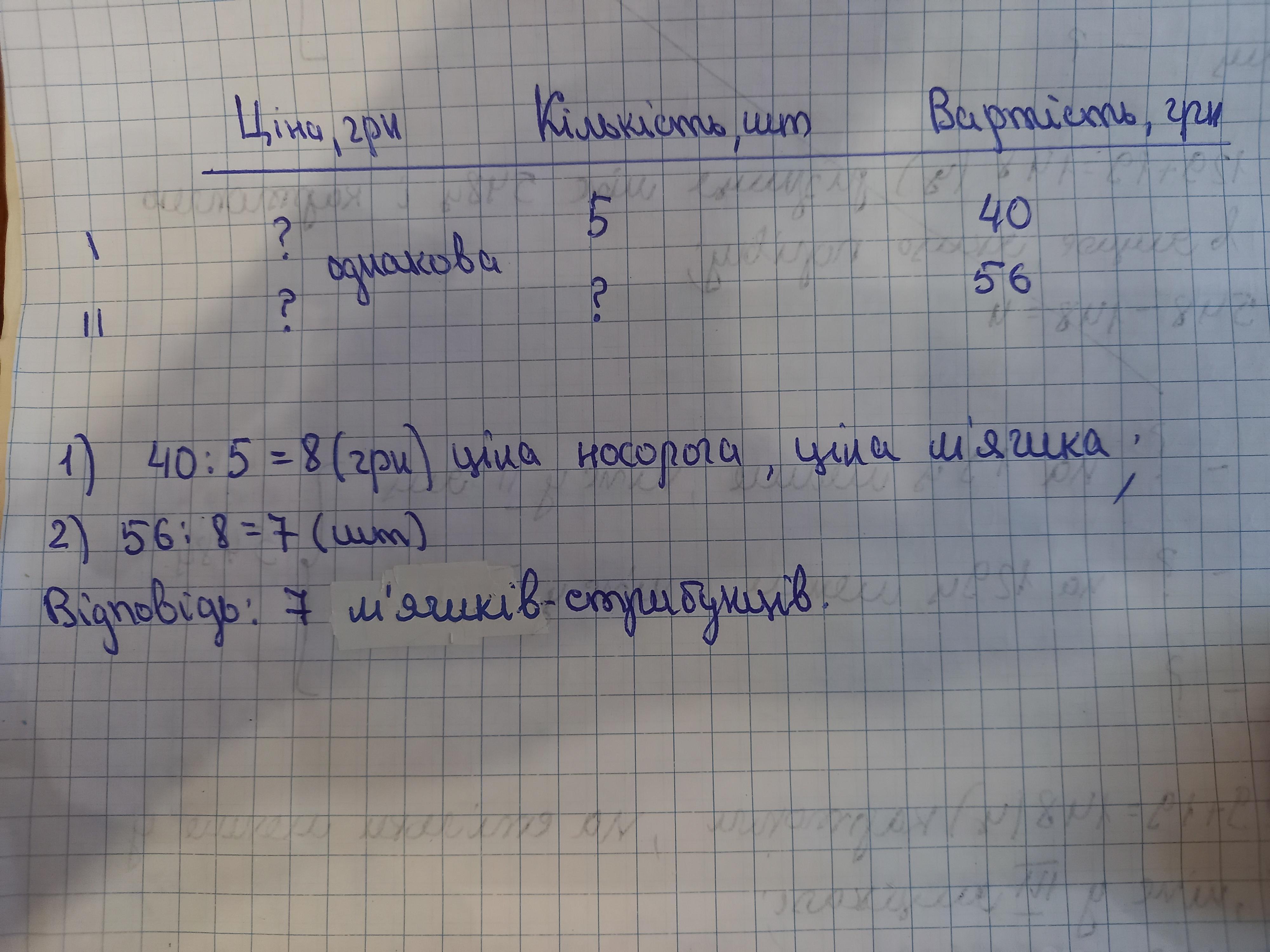 - 40:5=8 гривень за одну носорогiв фiгурок