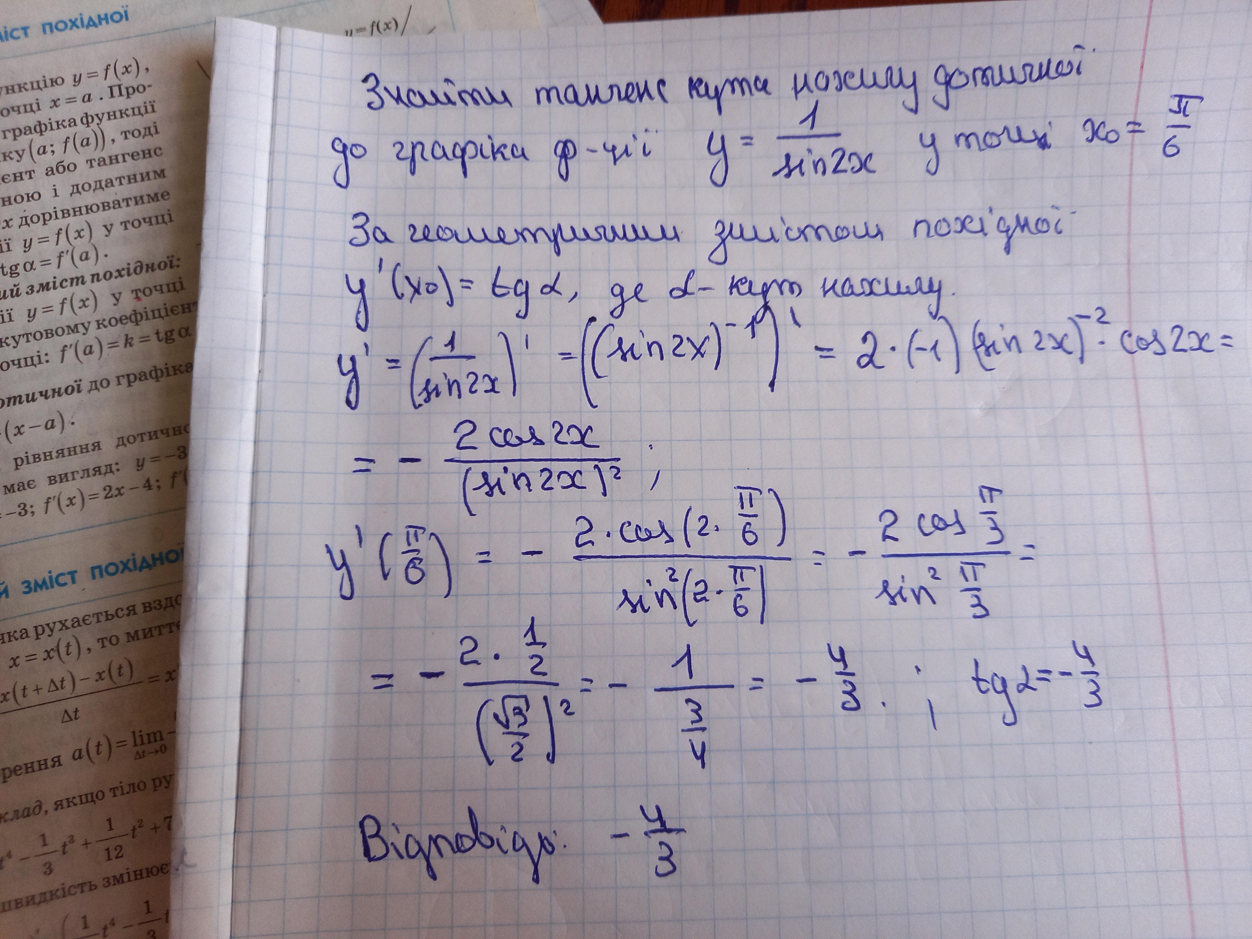 Знайдіть тангенс кута нахилу дотичної до графіка функції