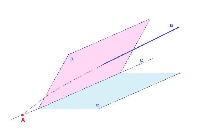 Так как с - линия пересечения плоскостей α и β, то точка А лежит в плоскостях α и β. Но тогда прямая а пересекает эти плоскости в точке А, что противоречит условию (по условию а║α и а║β, то есть не имеет с ними общих точек).