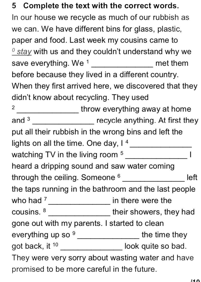 6 had (had left the taps open - не закрыл краны, Past Perfect для действия, произошедшего раньше)