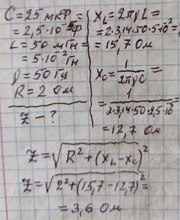 Конденсатор С=25 мкФ, котушку L=50 мГн та активний опір R=2
