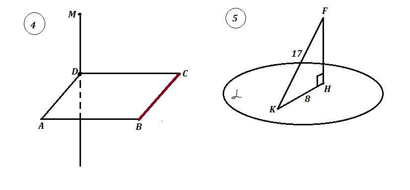 5) FК=17 см - наклонная к плоскости α . Опустим из точки М перпендикуляр МН на плоскость α , тогда КН - проекция наклонной FK на эту плоскость , КН=8 см .