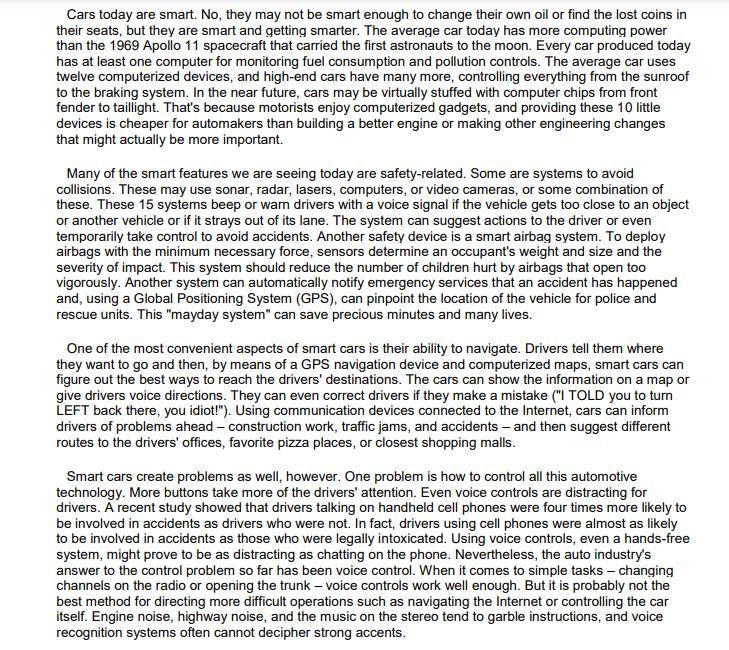 - "One of the most convenient aspects of smart cars is their ability to navigate."