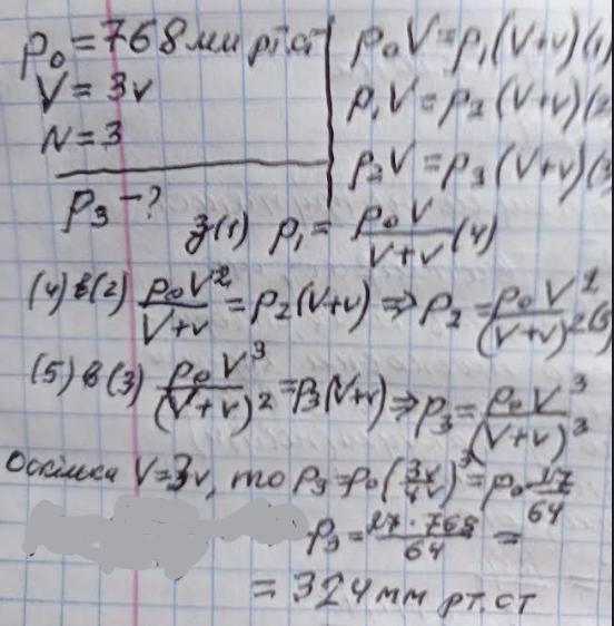 Тиск повітря в посудині 768 мм.рт.ст., об’єм циліндра розріджуючого на-